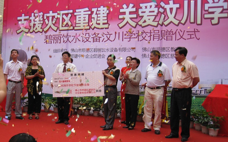2009年4月,在汶川地震一周年之際,為了盡快幫助汶川受震災(zāi)區(qū)重建家園,讓汶川的孩子們早日回到自己心愛的校園,讓孩子們喝上健康衛(wèi)生的水,碧麗公司向汶川縣正在重建中的6所學(xué)校贈送節(jié)能王數(shù)碼高背板飲水機(jī),為災(zāi)區(qū)的重建出一份力量,“大愛無疆,情系汶川”,碧麗關(guān)愛汶川災(zāi)區(qū)的孩子,為災(zāi)區(qū)孩子送上健康水是碧麗人的心愿。